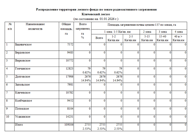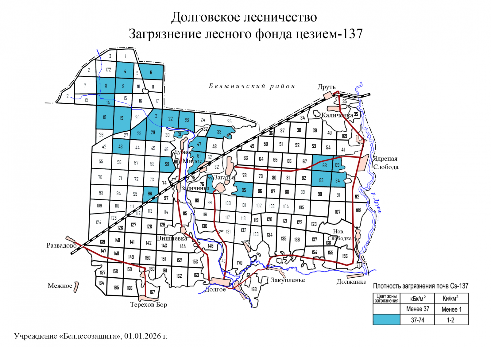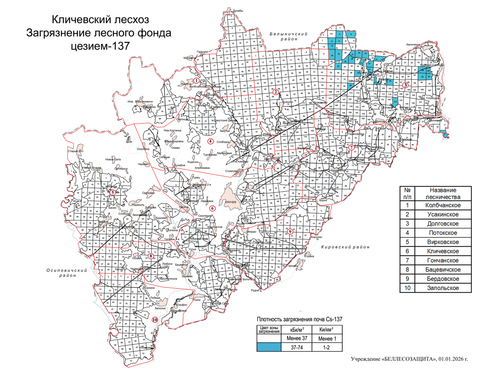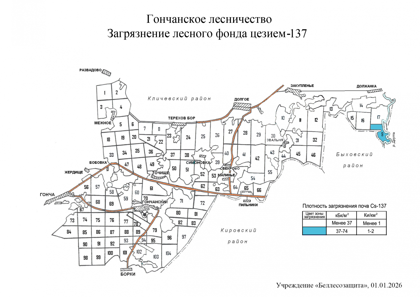 Карты-схемы радиоактивного загрязнения территории Гончанского, Долговского лесничеств, обзорная Кличевского лесхоза